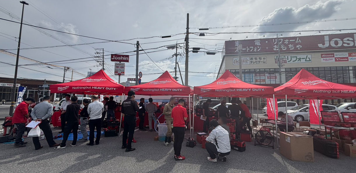 電動工具やアクセサリー、ツールボックスまで、幅広い商品を展示しました。また、デモ機も置いてお客様に体験して頂きました。 ミルウォーキーツールのレシプロソーを使用した、カットスピードコンテストも開催され、多くの方に体験頂けたように思います。