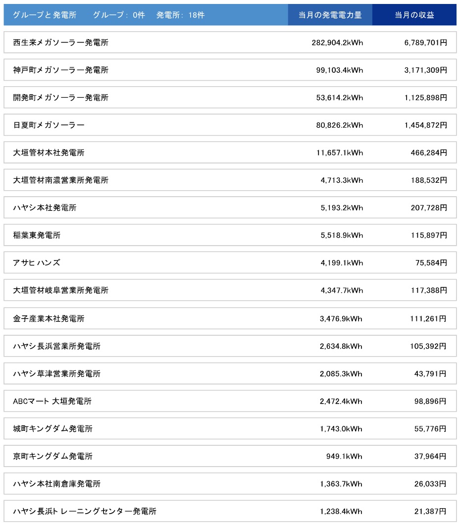 太陽光発電所(当社直営)の遠隔監視システムで18ヶ所の発電所の速報が出ました。